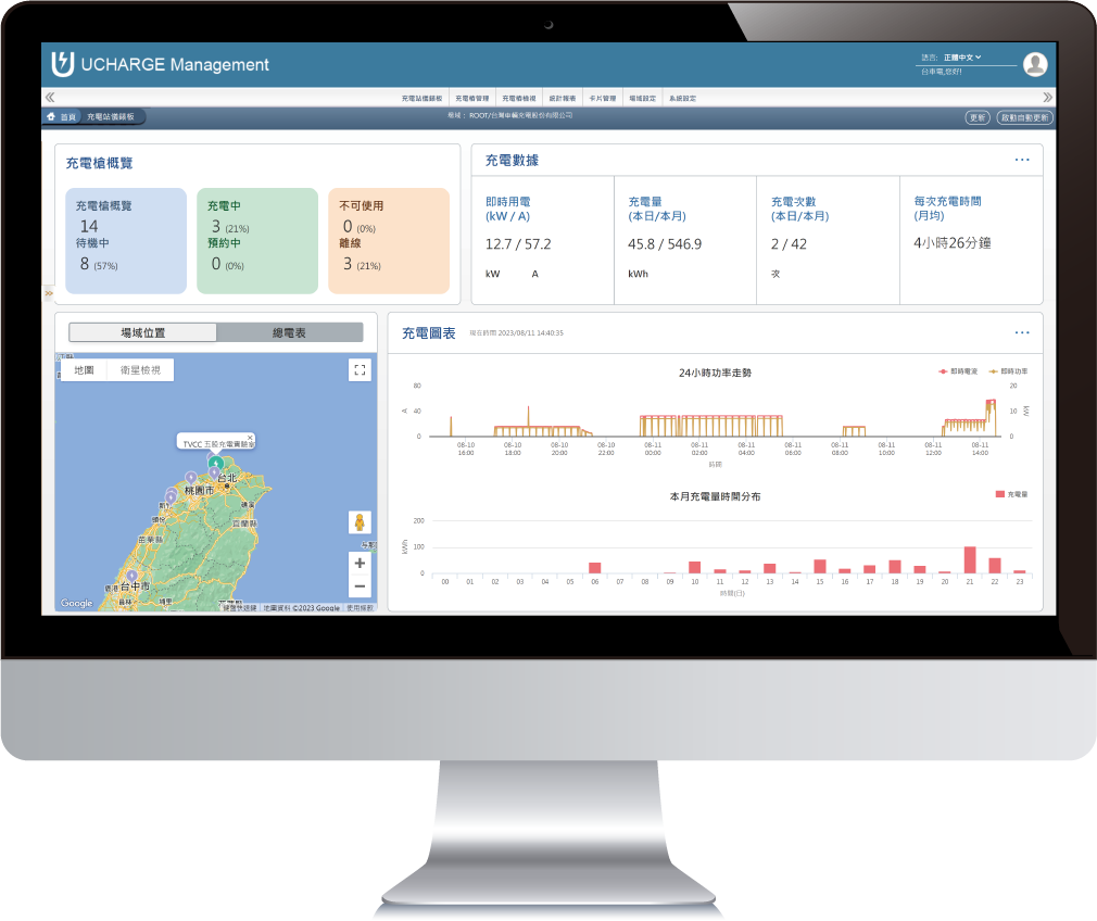 台灣車輛充電致力於便利的使用電動車充電樁,打造完整用電的解決方案,並提供順暢的服務流程。結合了金融科技(FinTech)、智慧聯網(AIoT)、大數據(BD)等科技應用,打造雲端智慧充電樁管理系統。此系統因應了車主各種充電狀態,分別為充電管家為在宅充電,電小二為旅途中補電,共享充電樁為目的地充電,全方位解決充電的所有問題。